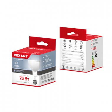 Rexant 604-4005 Лампа светодиодная Рефлектор MR16 9,5Вт 808Лм GU5.3 AC/DC 12В 6500K