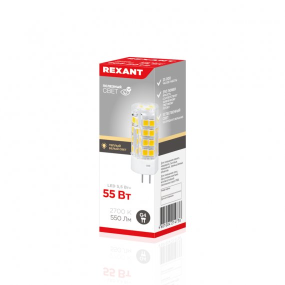Лампа светодиодная капсульного типа JD-CORN G4 230В 5,5Вт 2700K теплый свет (поликарбонат) REXANT