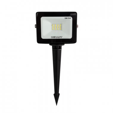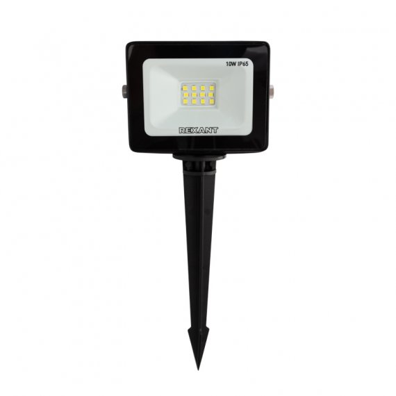 Прожектор светодиодный 10 Вт 200–260В IP65 800 Лм 6500 K, холодный свет REXANT + опора на грунте 605-100