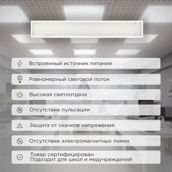 Благодаря наличию электромагнитной совместимости и равномерному освещению без пульсации панель безопасна для зрения.