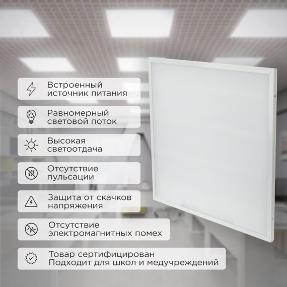 Панель ГОСТ! универсальная светодиодная REXANT 19 мм ОПАЛ 595x595 72 Вт 180–260 В IP20 6200 Лм 4000 K нейтральный свет