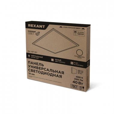 Rexant 607-001 Панель ГОСТ! светодиодная 19мм ОПАЛ 595x595 40Вт 180–260В IP20 3300Лм 4000K