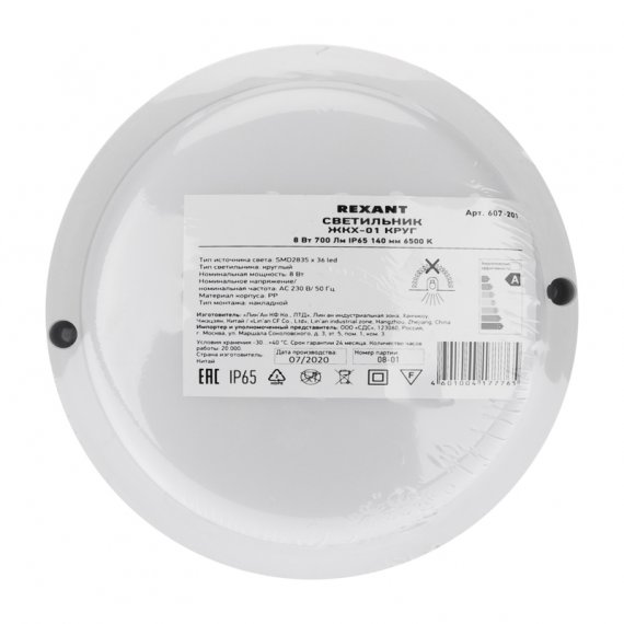 Пылевлагозащищенный накладной светильник REXANT серии ЖКХ предназначен для освещения прилегающих территорий, переходов, подсобных помещений и входных групп.