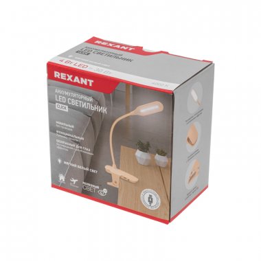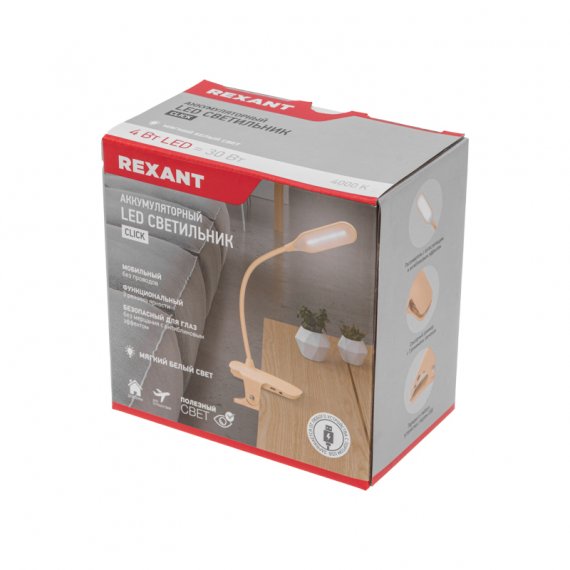 Светильник настольный Click 4Вт, LED, 4000К, диммируемый 3 ступени, заряжаемый, на прищепке, кремовый REXANT