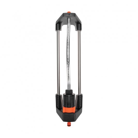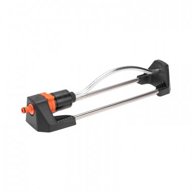 Осциллирующий дождеватель предназначен для полива растений и почвы. Представляет собой дугообразную трубку с расположенными на ней отверстиями, закрепленную на неподвижной подставке. Под напором воды трубка качается из стороны в сторону и обеспечивает равномерный полив участка. Пользователь может изменять дальность полива посредством регулирования угла качания.
