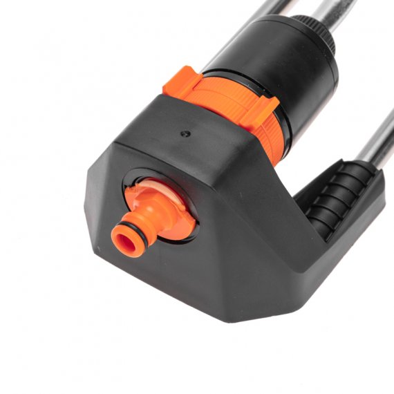 Надежное и герметичное крепление шланга к дождевателю осуществляется при помощи универсального соединителя, расположенного на корпусе устройства. Подставка дождевателя изготовлена из качественного и прочного пластика, устойчивого к воздействию низких температур и ультрафиолета.