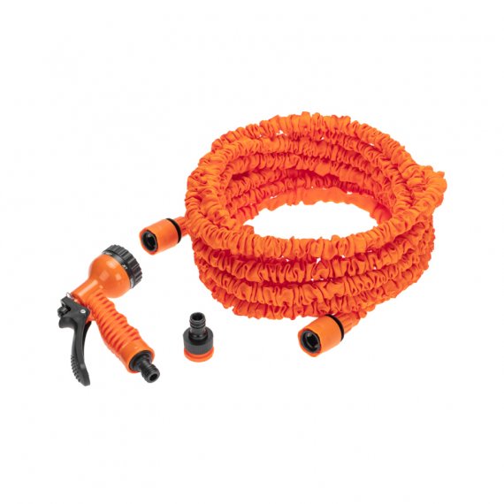 Поливочный набор применяется при организации систем полива и систем водоснабжения. Включает в себя растягивающийся шланг, пистолет-распылитель, а также 2 коннектора для соединения.