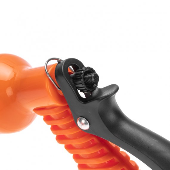 Пистолет-распылитель оснащен эргономичной ручкой, благодаря которой изделие удобно и комфортно держать в руке. Имеет 7 режимов подачи воды, регулируемых поворотной головкой. Также на пистолете предусмотрен фиксатор, позволяющий зафиксировать курок и не зажимать его пальцами в процессе полива.