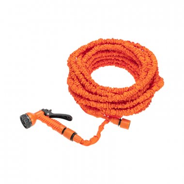 Поливочный шланг устойчив к износу и воздействию внешних факторов, не образует перегибов. Размер шланга в сложенном виде 15 метров. При подаче воды он растягивается до 45 метров. При хранении не занимает много места.