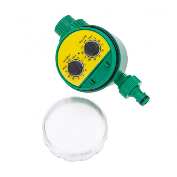 На корпусе устройства располагаются два переключателя, которые позволяют выставить интервал полива от 1 до 72 часов и его продолжительность от 1 до 120 минут.