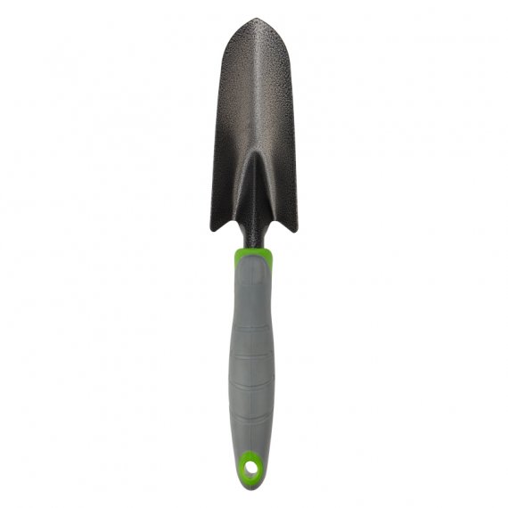 Благодаря прорезиненной рукоятке садового совка работать с ним легко и комфортно. В основании рукоятки предусмотрено небольшое отверстие, за счет которого инструмент можно подвесить на гвоздь или крючок для более удобного хранения.