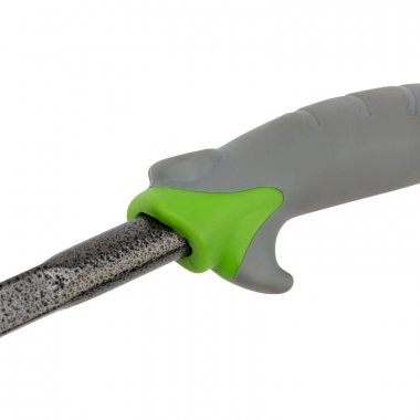 Двухкомпонентная рукоятка с удобным упором сделана из прочного пластика. Благодаря прорезиненной поверхности работать с ней легко и комфортно. В основании рукоятки предусмотрено небольшое отверстие, за счет которого инструмент можно подвесить на гвоздь или крючок для более удобного хранения.