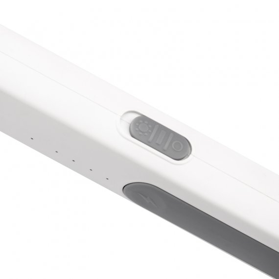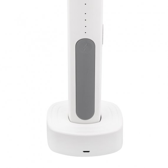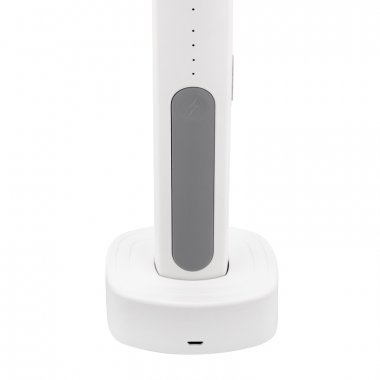 Имеет встроенный аккумулятор (1200 мАч), заряжается от станции, которая входит в комплект. Подключается к сети с помощью USB-провода (приобретается отдельно). Вес: 620 г.