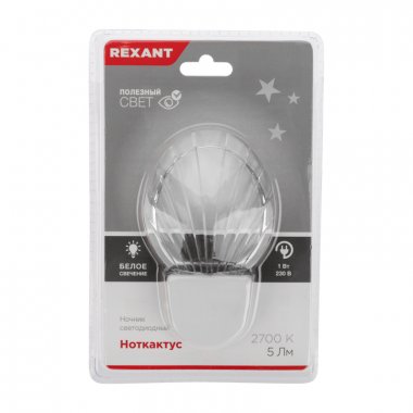 Светодиодный ночник REXANT НОТКАКТУС предназначен для освещения бытовых помещений, коридоров, спален и санузлов в темное время суток.