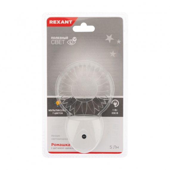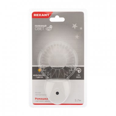 Светодиодный ночник REXANT РОМАШКА ХАМЕЛЕОН предназначен для освещения бытовых помещений, коридоров, спален и санузлов в темное время суток.