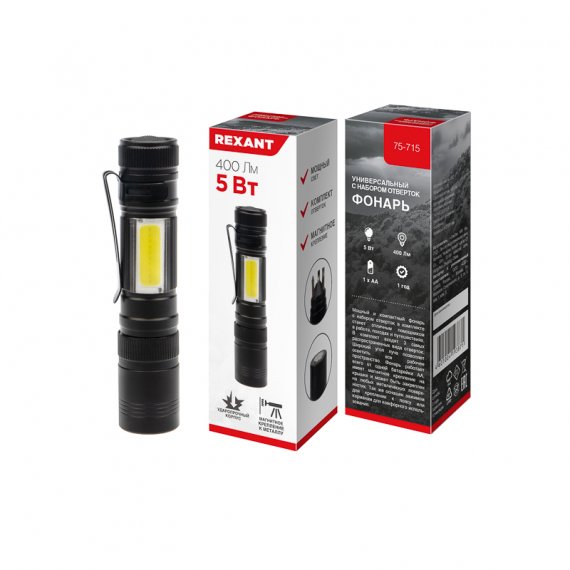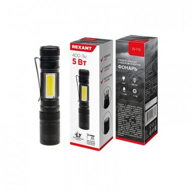 Rexant 75-715 Фонарь универсальный, трехрежимный, в алюминиевом корпусе