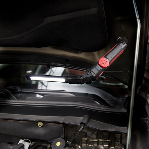 Автомобильный аккумуляторный светодиодный фонарь используется в гаражах и мастерских. Особенно полезен при необходимости ремонта в пути.