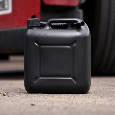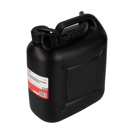 Канистра выполнена в черном цвете, на котором не видно разводов от дизельного топлива.