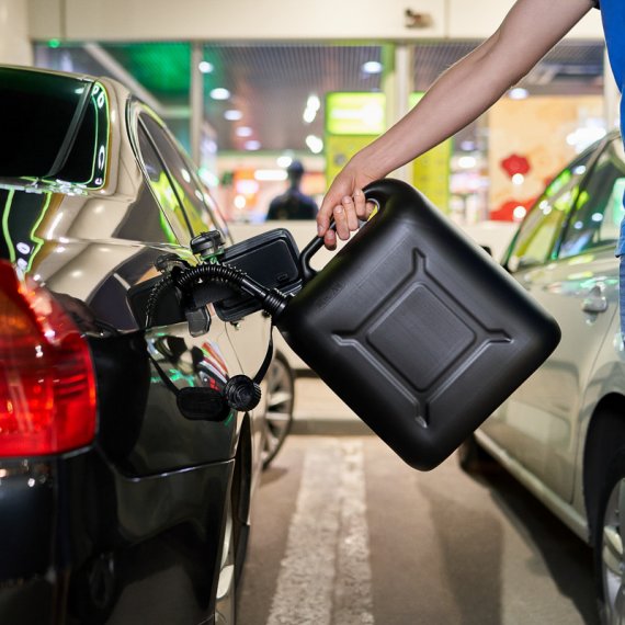 Канистра выполнена в черном цвете, на котором не видно разводов от дизельного топлива.