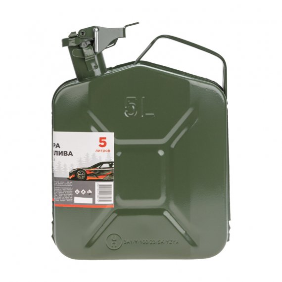 Канистра изготовлена из высококачественного металла, что обеспечивает долгий срок службы и устойчивость к механическим повреждениям.