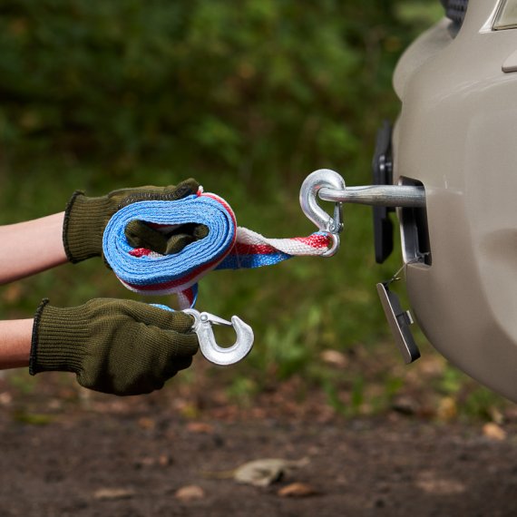Буксировочный трос предназначен для надежного соединения двух автомобилей с целью безопасной транспортировки или буксировки одного автомобиля с помощью другого.