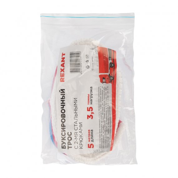 Трос буксировочный 3,5т, 5м, с двумя крюками REXANT