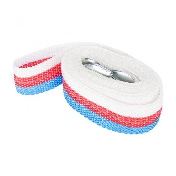 Трос изготовлен из полипропилена, отличающегося стойкостью к низким температурам и резкому изменению влажности. На концах изделия расположены металлические крюки с пружинным фиксатором.