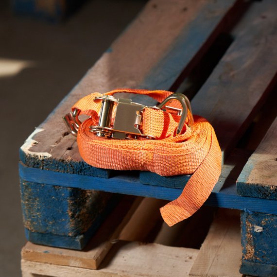 Конструкция изделия предполагает наличие храпового механизма, который фиксирует натяжение и поддерживает стабильность груза в течение всего пути.