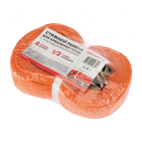 Rexant 80-0242 Ремень стяжной для груза, багажный, с крюками и храповым механизмом