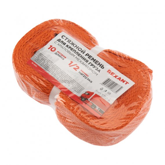 Ремень стяжной для груза, багажный, с крюками и храповым механизмом, 10х0,038м REXANT
