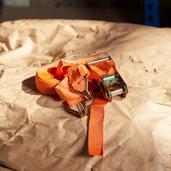 Конструкция изделия предполагает наличие храпового механизма, который фиксирует натяжение и поддерживает стабильность груза в течение всего пути.