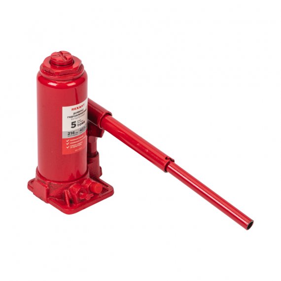 Гидравлический бутылочный домкрат 5 т Rexant поднимает грузы массой до 5 тонн на высоту до 413 мм. Оптимален для автомобилей с большим клиренсом. Будет полезен автолюбителям при проведении технического обслуживания и ремонта. Отличается плавностью хода, надежностью и жесткостью конструкции.