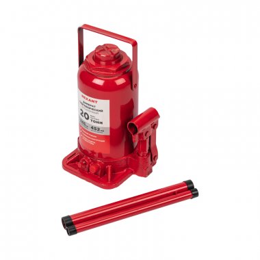 Гидравлический бутылочный домкрат 20 т Rexant поднимает грузы массой до 20 тонн на высоту до 452 мм. Оптимален для автомобилей с большим клиренсом. Будет полезен автолюбителям при проведении технического обслуживания и ремонта, а также для профессионалов на СТО. Отличается плавностью хода, надежностью и жесткостью конструкции.