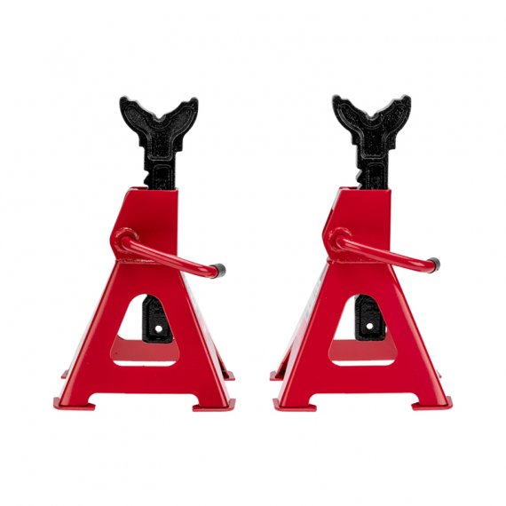 Конструкцией предусмотрен зубчатый механизм, надежно удерживающий шток в выдвинутом положении. Подставки пригодятся в гараже или автосервисе во время проведения ремонтных работ.