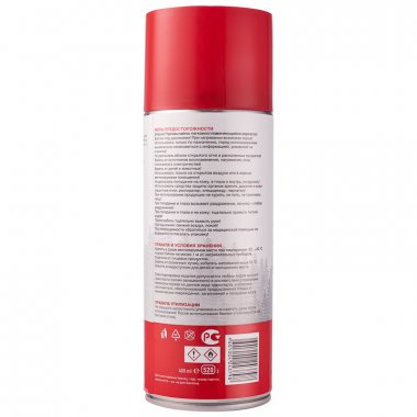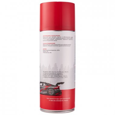 Не оставляет следов, быстро сохнет. Безопасен для резины, винила и пластика. Может использоваться для обезжиривания поверхностей перед склеиванием или герметизацией. Не содержит токсичного перхлорэтилена. Специальная аэрозольная головка формирует мощную струю направленного действия, удаляющую все виды загрязнений.
