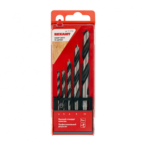 Набор сверл по дереву 4-10 мм, 5 шт. REXANT.