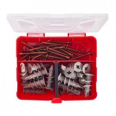 Набор крепежа для гипсокартона REXANT с дюбелем «Driva» 25 шт. Набор крепежа для гипсокартона REXANT позволяет осуществить крепления всего к гипсокартону при мелком бытовом ремонте. Содержит саморезы, дюбель "DRIVA", позволяющие осуществить крепление к гипсокартонному основанию. Набор расфасован в прочный пластиковый органайзер многоразового использования. Секции органайзера фиксируются замками, которые надежно защищают от случайного открывания. Внутри секции разделены съемными перегородками, позволяющими организовать внутреннее пространство в зависимости от потребностей и делает органайзер пригодным для хранения не только мелочей, но и предметов средней величины. Встроенные секции на крышке отлично подходят для хранения скобяных изделий.