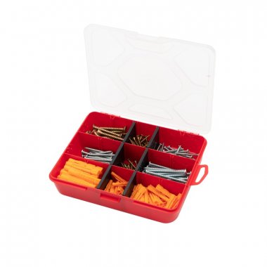 Набор крепежа УНИВЕРСАЛЬНЫЙ Набор крепежа УНИВЕРСАЛЬНЫЙ предназначен для хранения дома. Позволяет осуществить 95 % всего крепления при мелком бытовом ремонте. Содержит широкий спектр саморезов, широкий спектр дюбельной продукции, позволяющий осуществить крепление к любому основанию. Набор расфасован в прочный пластиковый органайзер многоразового использования. Состав набора: 1. Органайзер. 2. Саморез с потайной головкой 5x60 мм 20 шт. 3. Саморез с потайной головкой 4x40 мм 20 шт. 4. Саморез с потайной головкой 3x30 мм 20 шт. 5. Дюбели универсальные 8x51 мм 20 шт. 6. Дюбели универсальные 6x36 мм 20 шт. 7. Дюбели универсальные 5x31 мм 20 шт. 8. Шуруп DIN 7981 с полукруглой головкой 3,5x38 мм 20 шт. 9. Шуруп DIN 7981 с полукруглой головкой 3,9x45 мм 20 шт. 10. Шуруп DIN 7981 с полукруглой головкой 4,8x60 мм 20 шт.