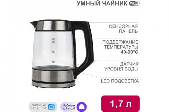 Wi-Fi чайник представляет собой умный кухонный прибор, управление которым осуществляется дистанционно или при помощи встроенной сенсорной панели.