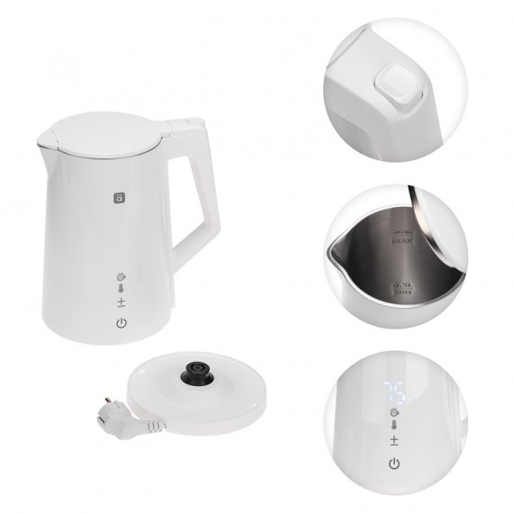 На корпусе располагается сенсорная панель с датчиком температуры воды для управления температурными режимами, подходящими для заваривания популярных видов чая и кофе, а также для приготовления детского питания. Предусмотрена поддержка тепла от 40 ℃ до 90 ℃.