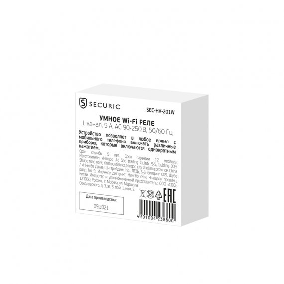 Rexant SEC-HV-201W Умное встраиваемое Wi-Fi реле одноканальное SECURIC