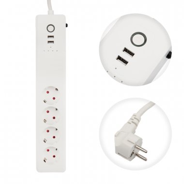 Устройство содержит 4 стандартные электрические розетки и 2 USB-разъема, что позволяет подключить сразу несколько приборов и управлять ими независимо друг от друга.