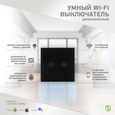 Выключатель может использоваться самостоятельно, а также совместно с другими устройствами интеллектуальной системы «Умный дом» и принимать участие в автоматизированных умных сценариях.