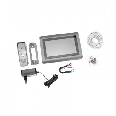 Комплект поставки: Видеодомофон-1 шт. ; Вызывная панель-1 шт. ; Кронштейн для крепления монитора на стену - 1 шт.; Угловое крепление для вызывной панели - 1 шт ; Крепёжная пластина с козырьком для вызывной панели - 1 шт, Соединительный кабель 5 м - 1 шт ; 4-х проводная подготовка; 2-х проводная подготовка; Инструкция-1шт; Комплект крепежа -1 шт