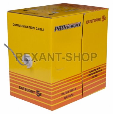 Кабель UTP 2PR 24AWG, CAT5e (бухта 305 м) PROconnect. Неэкранированная витая пара, материал проводника высокоочищенная бескислородная медь, калибр (24 AWG). Материал оболочки — ПВХ (PVC).