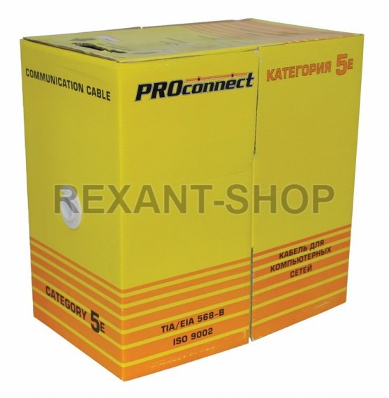 Кабель UTP 4PR 24AWG CAT5e OUTDOOR CCA PROCONNECT. Неэкранированная витая пара, материал проводника алюминий плакированный медью CCA диаметром 0,5 мм. (24 AWG). Материал оболочки – ПЭ (PE).