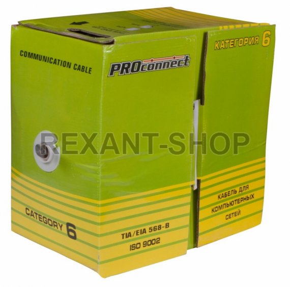 Кабель FTP 4PR 23AWG CAT6 CCA PROCONNECT. Экранированная витая пара, материал проводника алюминий плакированный медью CCA диаметром 0,57 мм. (23 AWG). Материал оболочки – ПВХ (PVC).