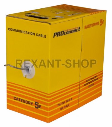 Кабель FTP 4PR 26AWG CAT5e CCA PROCONNECT. Экранированная витая пара, материал проводника алюминий плакированный медью CCA диаметром 0,4 мм. (26 AWG). Материал оболочки – ПВХ (PVC).