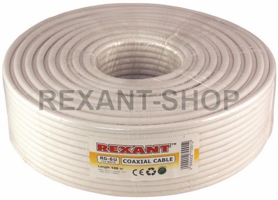 Кабель RG-6U+CU 64*(75 Ом) 100м белый REXANT