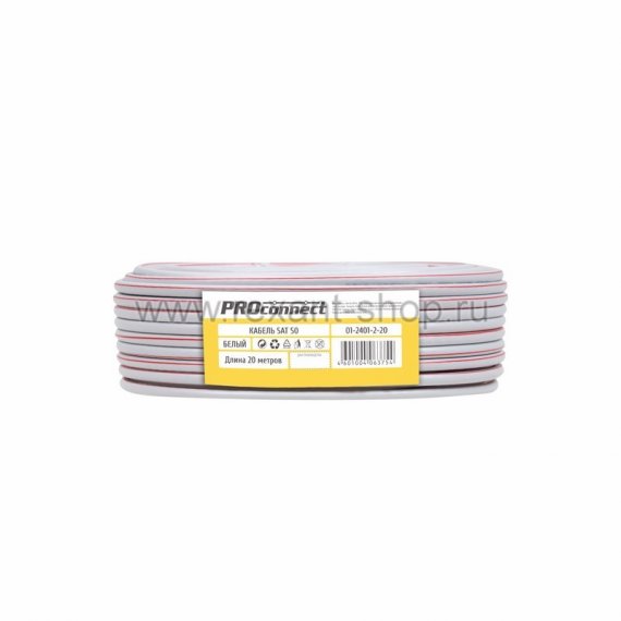 Кабель SAT 50M (75 Ом), CCS/Al/Al 75 % (бухта 20 м) белый PROconnect